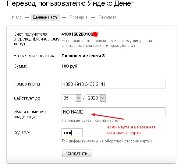 Заполните поля, т.к виртуальная карта не имеет имени, напишите в это поле No Name, если карта у Вас именная, то заполните как на карте.